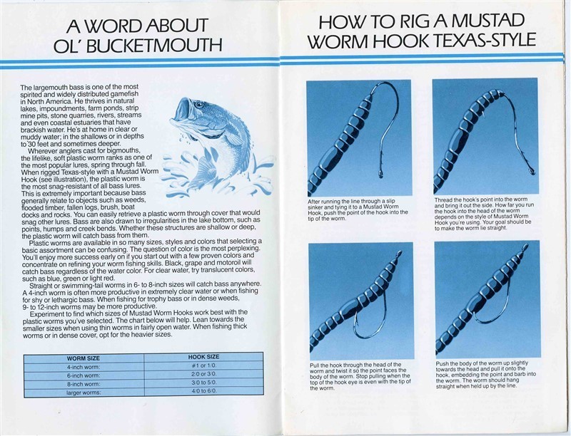 A well illustrated large format 8 panel fold out brochure. Fisherman's Guide to the Selection of Mustad Worm Hooks