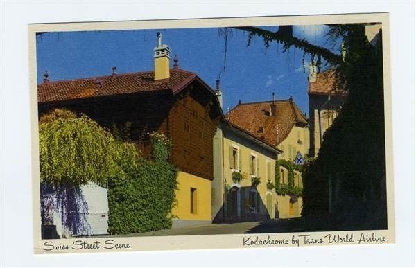 TWA Swiss Street Scene Postcard Kodachrome Trans World Airlines