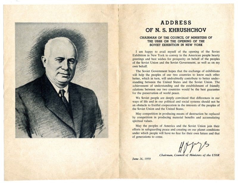 Address of N S Khruschchov 1959 Opening Soviet Exhibition New York Khruschchev