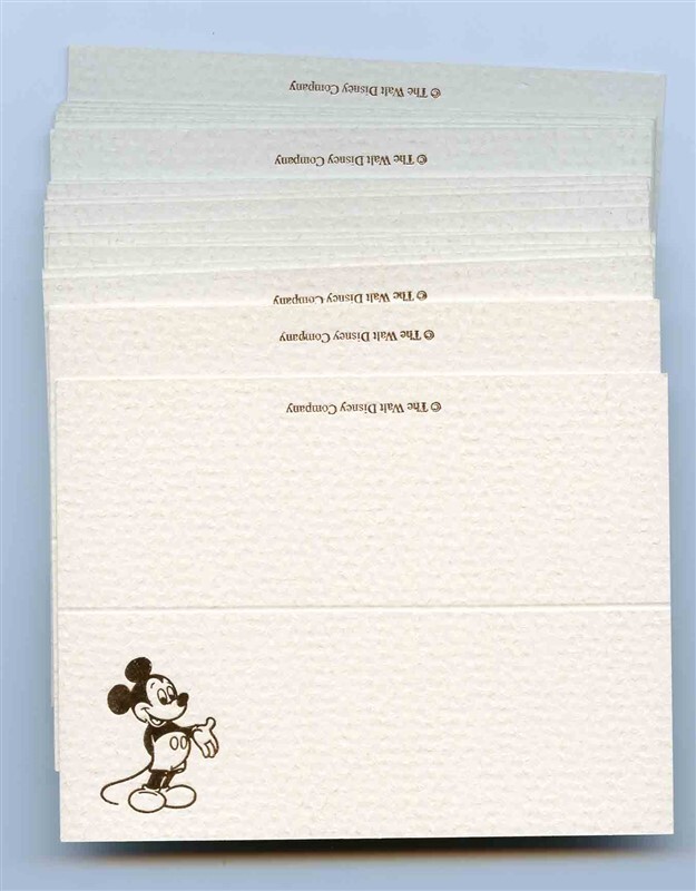New Old Stock unused Walt Disney Place Cards featuring a Gold Mickey Mouse. Includes 25 Mickey Mouse in Gold Place Cards by Walt Disney . Each measures about 4 inches by 3 inches. They are scored for folding. Circa 1990's.