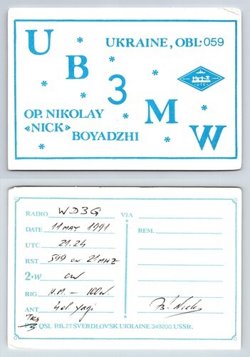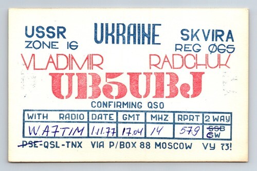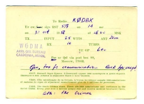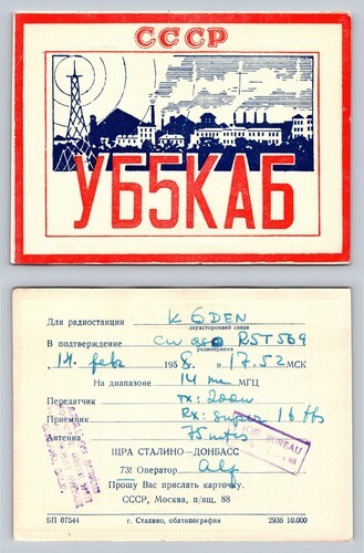 Sent through the QSL Bureau. 1958 QSL South Crimes Shore UB5TN Moscow USSR