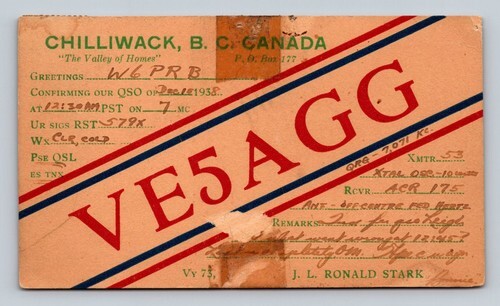 A Dawson Creek British Columbia QSL Card mailed in 1958 from VE7AKS