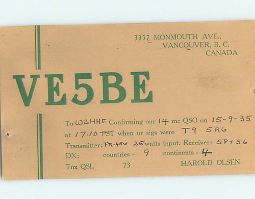 Dawson Creek British Columbia QSL Card 1958 and similar items
