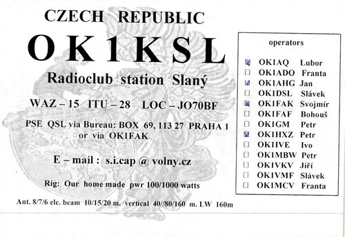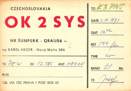 Sent through QSL Bureau. 1950's QSL Praha Czechoslovakia OK1KTI Prague