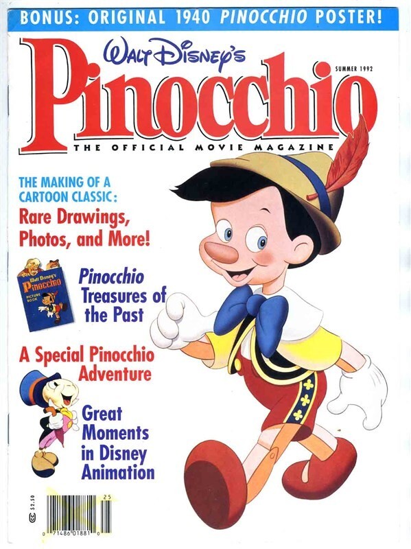 Walt Disney's Pinocchio The Official Movie Magazine from Summer 1992. An exceptional copy in fine very condition.. 32 pages of stories, ads, articles, photos and information. Plus an Original 1940 Pinocchio Poster centerfold. .