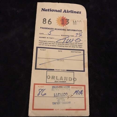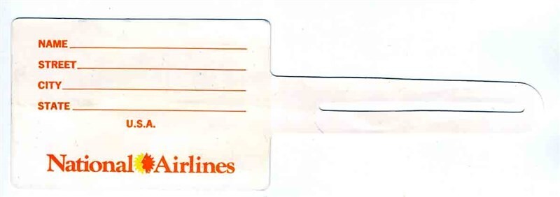 A 2 sided National Airlines and Planters Nuts Plastic Luggage Tag. Has not been used. Measures about 2 1/2" x 7 1/2" with National Airlines on one side and advertising for Planters Nuts on the other side.