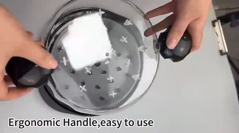 This chicken meat shredder features a non-skid base mat that keeps the bowl securely in place while in use, ensuring safety and stability. The transparent lid allows you to monitor shredding progress.