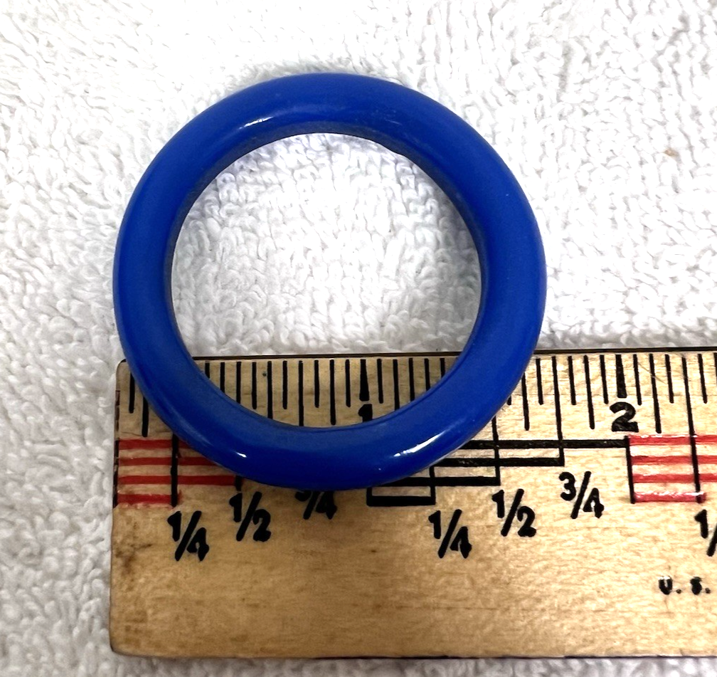 Vintage Chinese Lt Cobalt Blue Peking Glass Hoop Ring Sewing Basket Handle measures approx 1 3/4". Measurement from outside edge to outside edge. Very good used condition no damage, cracks, likely from a sewing basket.
