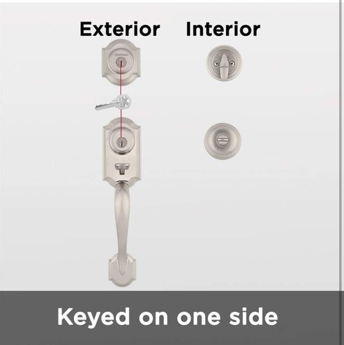 As the industry leader, Kwikset has provided trusted security for over 60 years and has become synonymous with security, peace of mind, style and innovation. Enjoy increased security and easy fit with the Montara handleset. 2 points of locking, on the deadbolt and the handleset, provide double the security. And the adjustable through bolt at the bottom of the handleset allows for easy installation and provides you peace of mind knowing that it will adjust to fit the bottom hole in your door. With the arched design, the Montara handleset will add both security and style to your front door Juno's elegant, traditional style blends perfectly with most design styles. The crisp, clean appearance of the Satin Nickel finish adds to the overall look of the product and brings a modern feel. This single cylinder handleset can be locked or unlocked by a key on the outside, or the turn button on the inside Smartkey Re-key Technology allows you to control who has access to your home. Re-key the lock yourself in seconds in 3 easy steps. Have you recently moved or had a child lose a key It's time to re-key. SmartKey provides the highest level of residential security and features BumpGuard to protect against lock bumping.