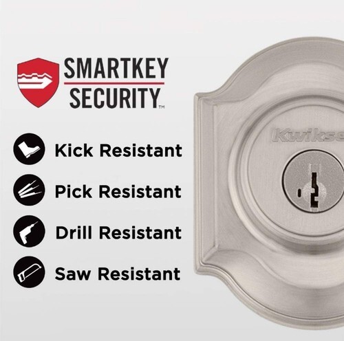 SMARTKEY SECURITY: Kwikset?s SmartKey Security technology protects against advanced break-in techniques and allows you to re-key your lock yourself in seconds