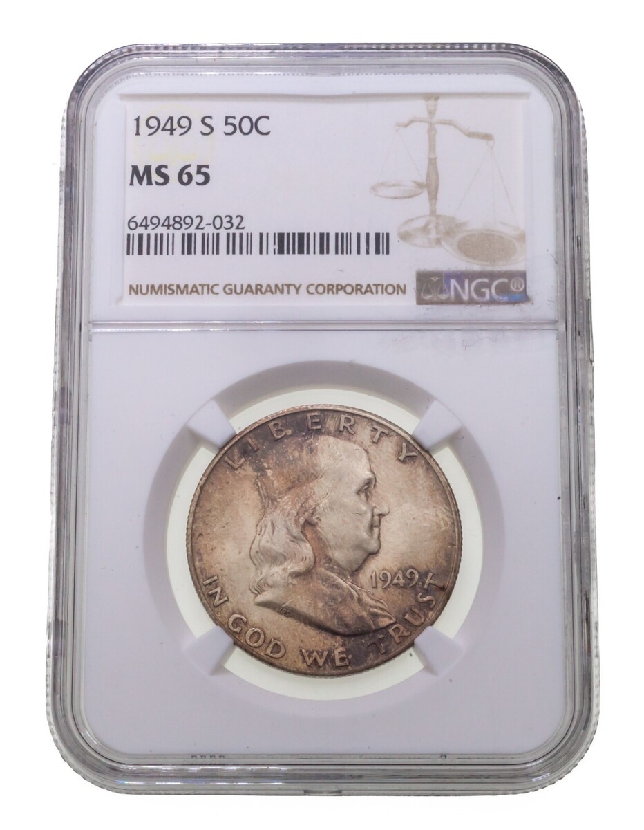 1949-S 50C Franklin Half Dollar Graded by NGC as MS-65, Nice Toning