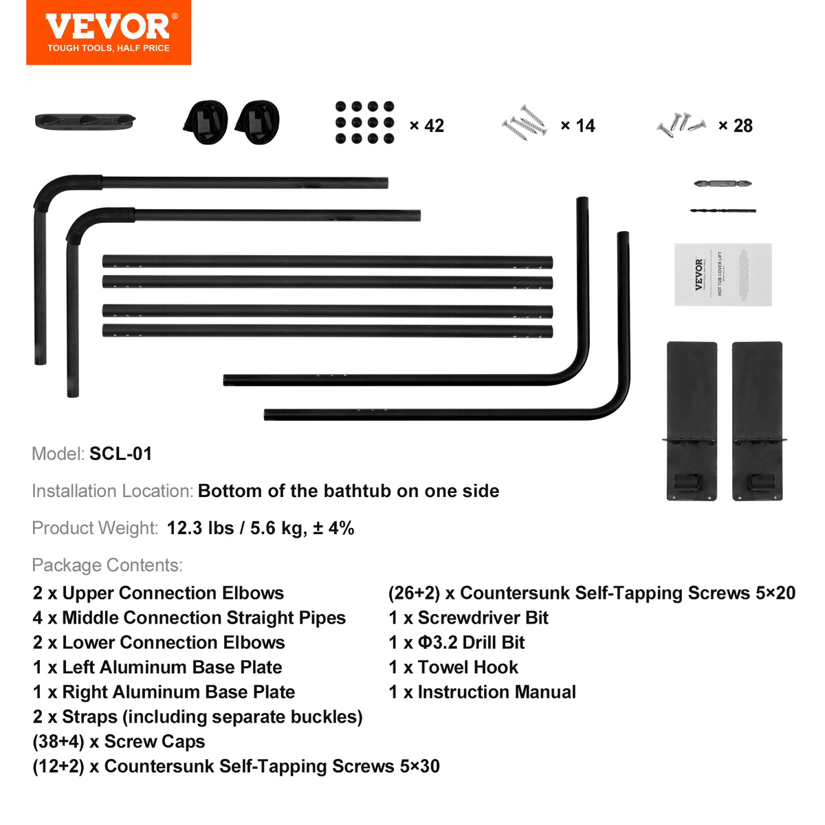Sturdy Durable Lift: Made of durable black powder-coated aluminum tubing, this material has high strength to withstand large loads while maintaining its lightweight characteristics. It reduces the possibility of rusting over time and also provides ample and reliable support for your bathtub cover.