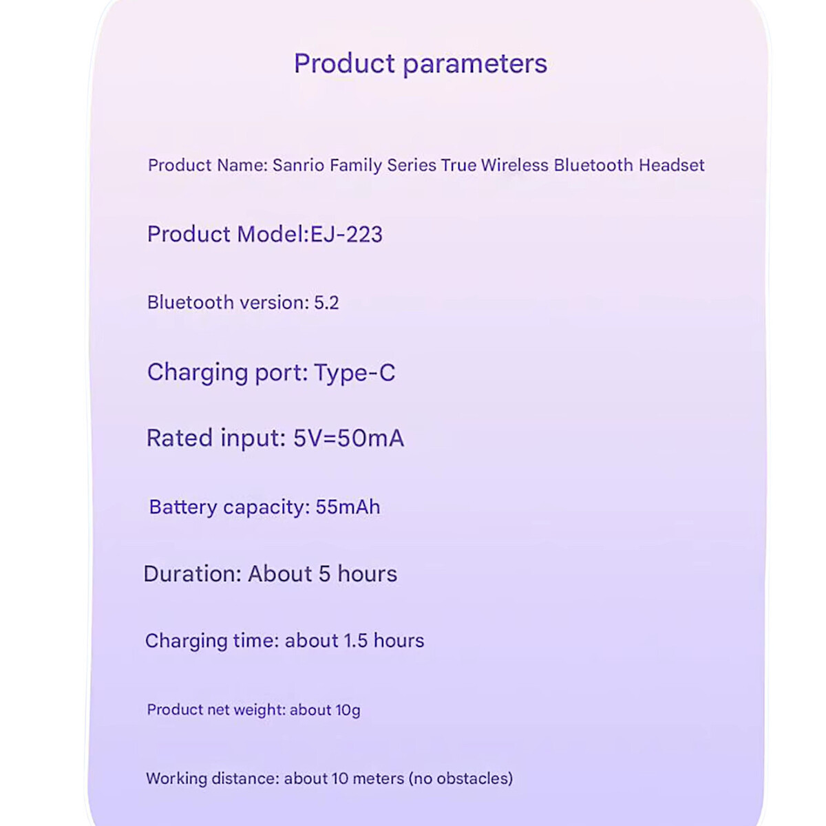 Kitty Kuromi Wireless Bluetooth Single Ear Headset Type-C Display Sport Ear-Hook