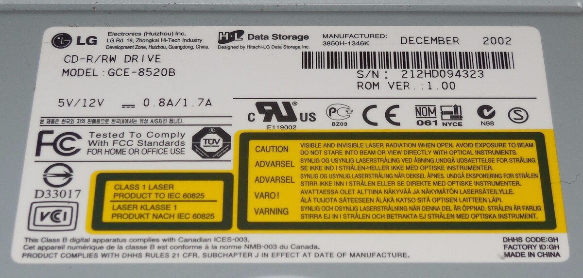 For Sale is a LG 52x24x52x CD-R/RW ReWritable PC Computer Compact Disc Ultra Speed CD Drive GCE-8520B. Its In good USED working condition it was pulled from a working Desktop. Please ask Any and All Questions prior to purchasing. Fast Same or Next day shipping with Free Delivery Confirmation within the U.S. Payment Due within 7 days of purchase (if you need more time please let us know In advance) we love to combine shipping is always a Yes and Most of the time Additional Items Ship for free.