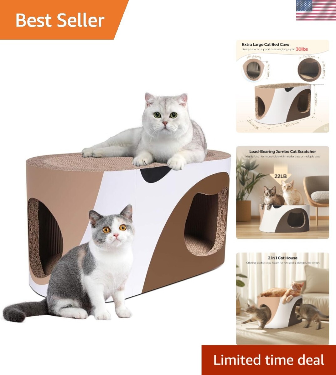 Big Cat Scratcher Lounge, Corrugated Cardboard Cat Scratcher House with Hole,...