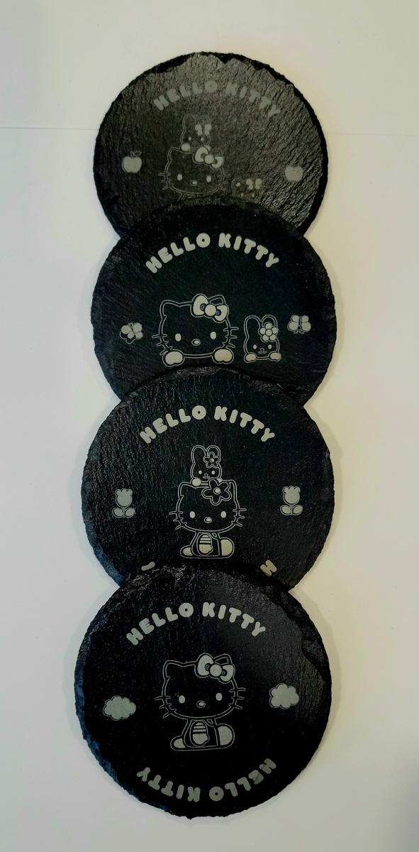 · Hello Kitty Set of 4 laser engraved Slate Stone Coasters NEW