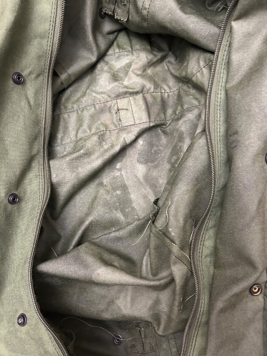 This genuine military flyer?s kit bag is crafted for durability with its robust nylon material and heavy-duty zipper. Designed for reliable functionality, it features dual handles for easy carrying. A staple for travel or gear storage, its olive drab color and USA-made craftsmanship reflect authentic military standards.