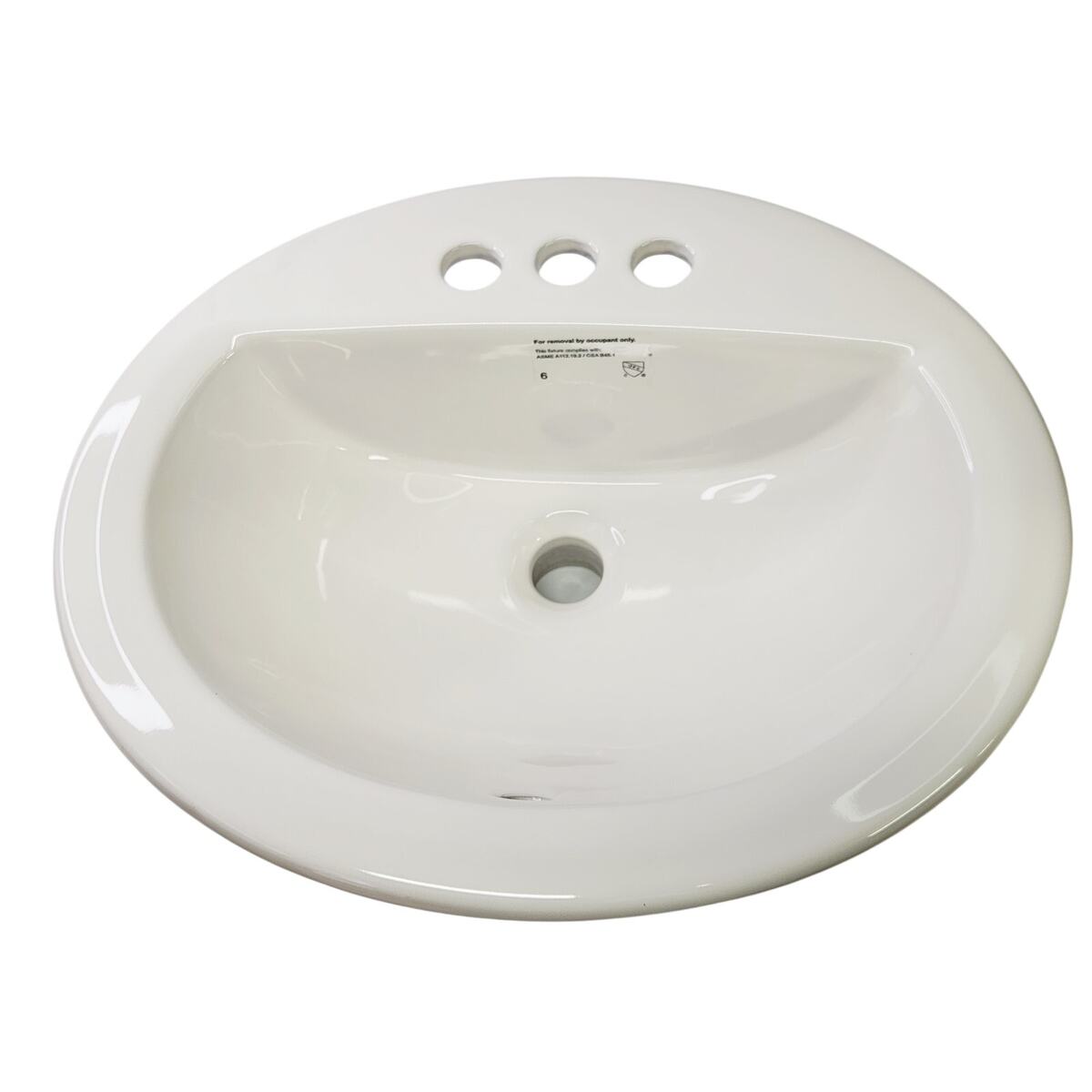Proflo PF19164WH Rockaway 19" Oval Vitreous China Drop In Bathroom Sink with Overflow and 3 Faucet Holes at 4" Centers - White