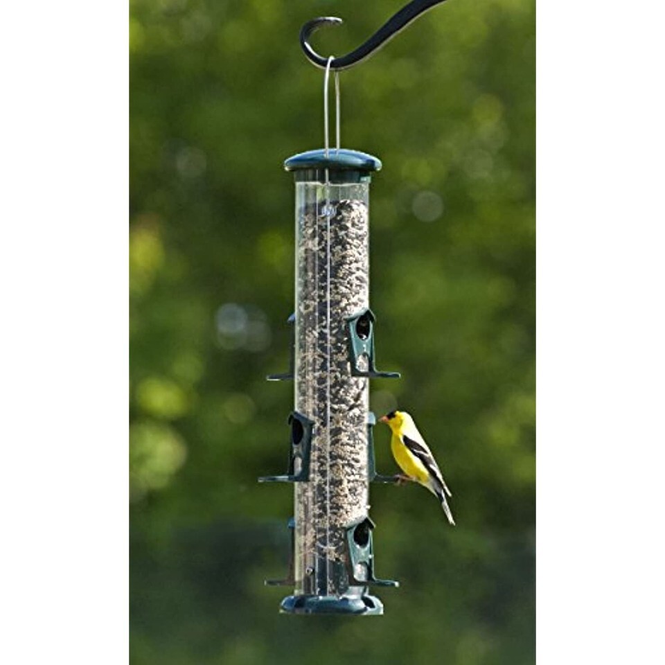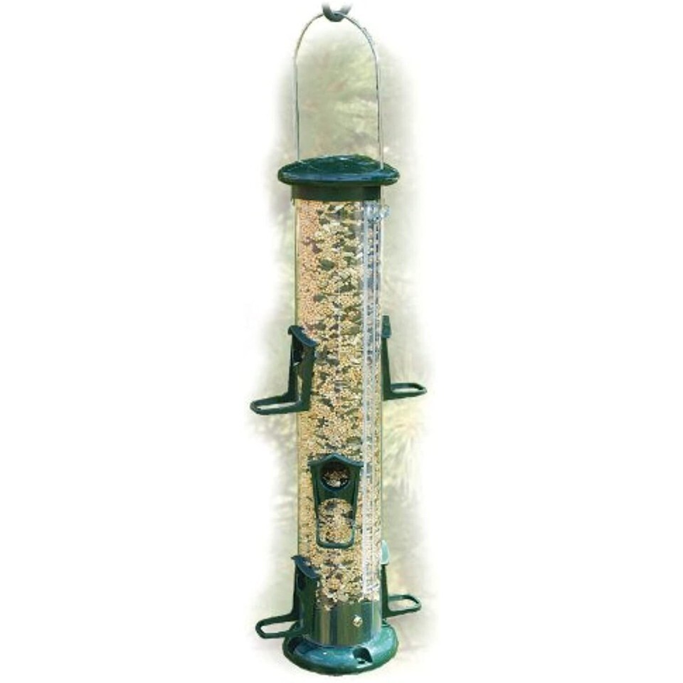 This 6 ports versatile and sturdy, tube feeders feature plastic caps, bottoms and tube. Easy to hang, fill and clean. Tube feeder comes fully assembled. Green top and seed ports. Holds about 2 pounds of seed. Measures 5-1/2-inch by 5-1/2-inch by 15-inch height.