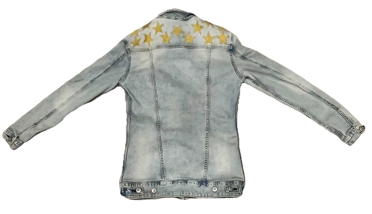 The LuLaRoe Yellow Star Print Denim Jacket in XS is a stylish and fun addition to any woman's wardrobe. Made of cotton denim, this basic jacket features a vibrant yellow exterior with a star print pattern, adding a pop of color to any outfit. The XS size and regular fit make it perfect for a variety of body types, while the denim fabric ensures durability and comfort. Perfect for casual days out or a night on the town, this jacket is sure to make a statement with its bold and eye-catching design.l