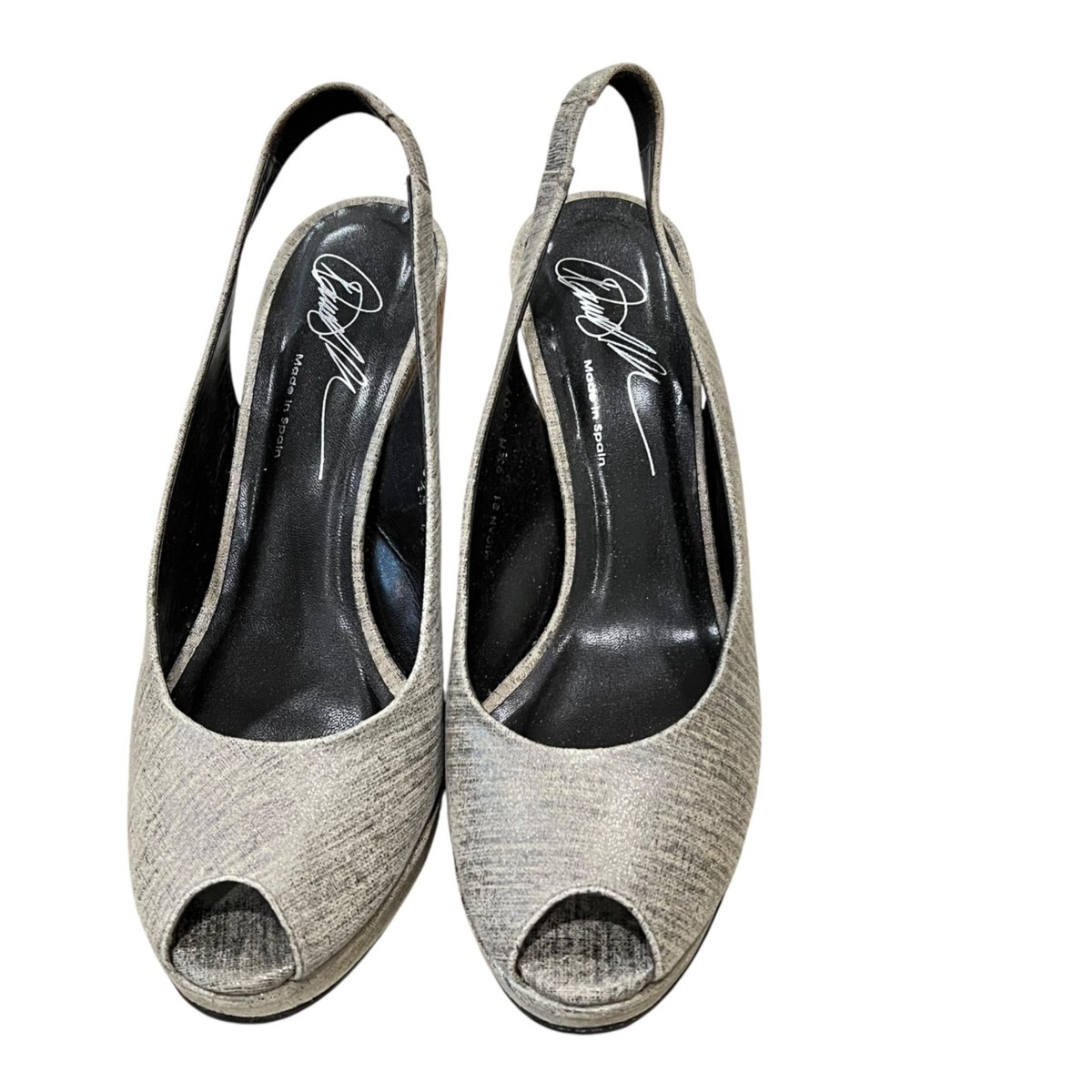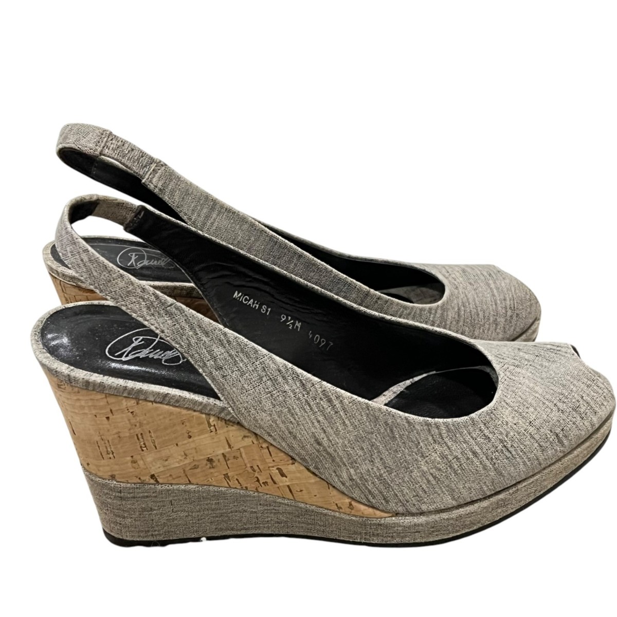 Donald J Pliner Micah 60CD Pewter Natural Bronze Wedge Slingback Peep Toe Shoes