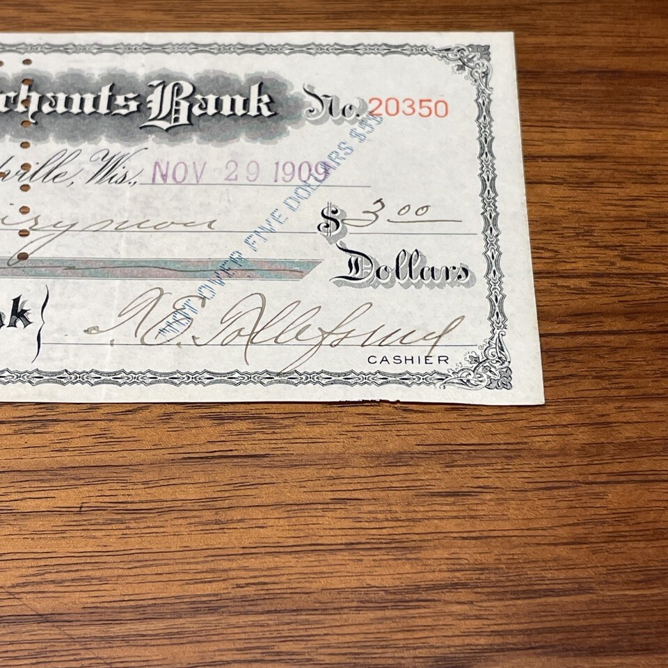 1909 Farmer's & Merchant's Bank Check #20350 and 49 similar items