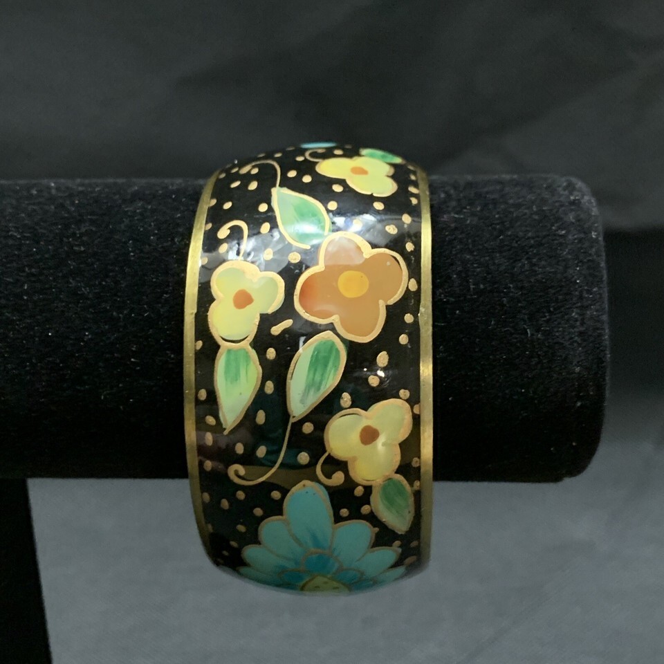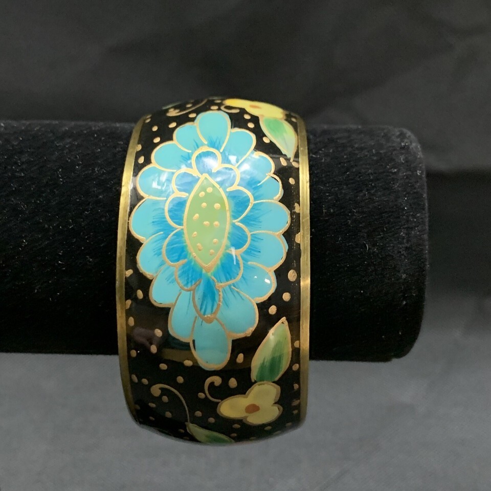 Vintage Enamel Painted Floral Bangle Bracelet Fashion Jewelry Career Wear KG