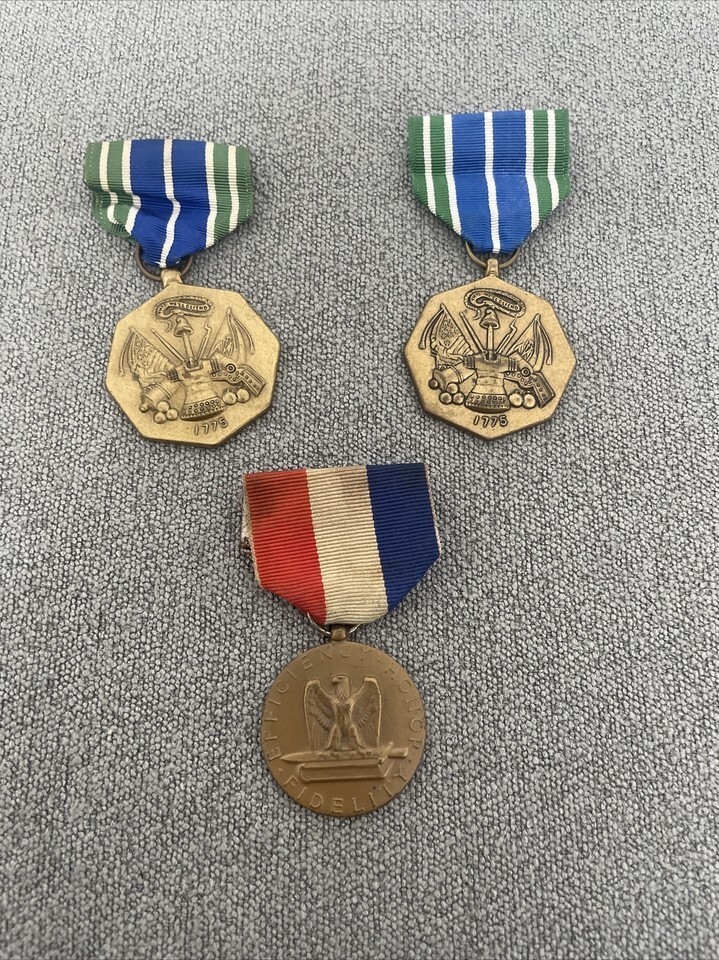Lot of 3 Vintage Efficiency Honor Fidelity & 1775 Military Achievement Medals EG