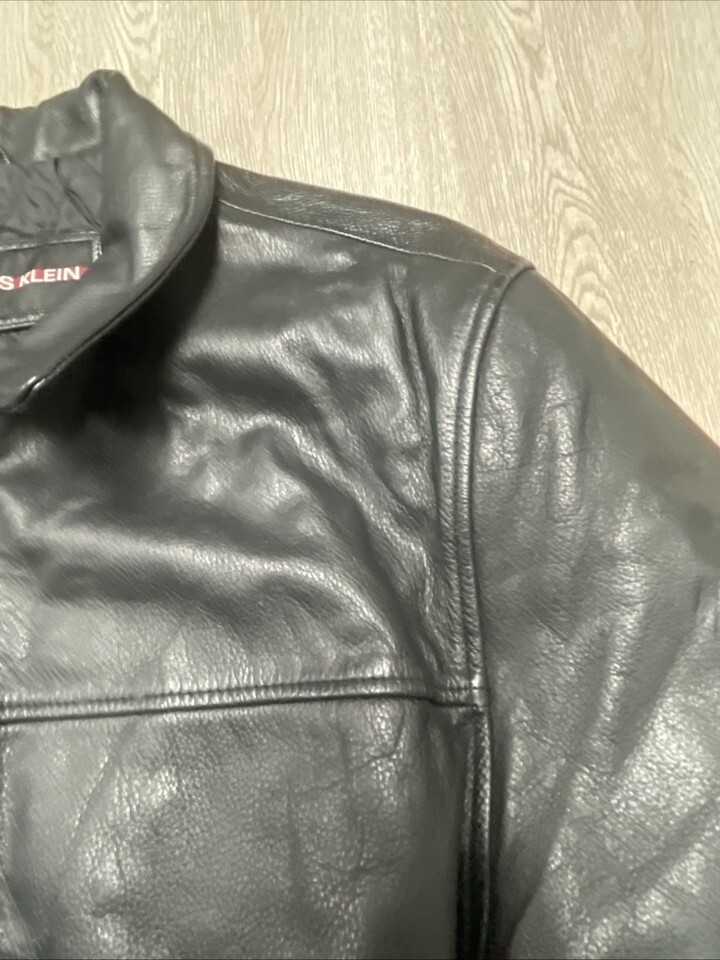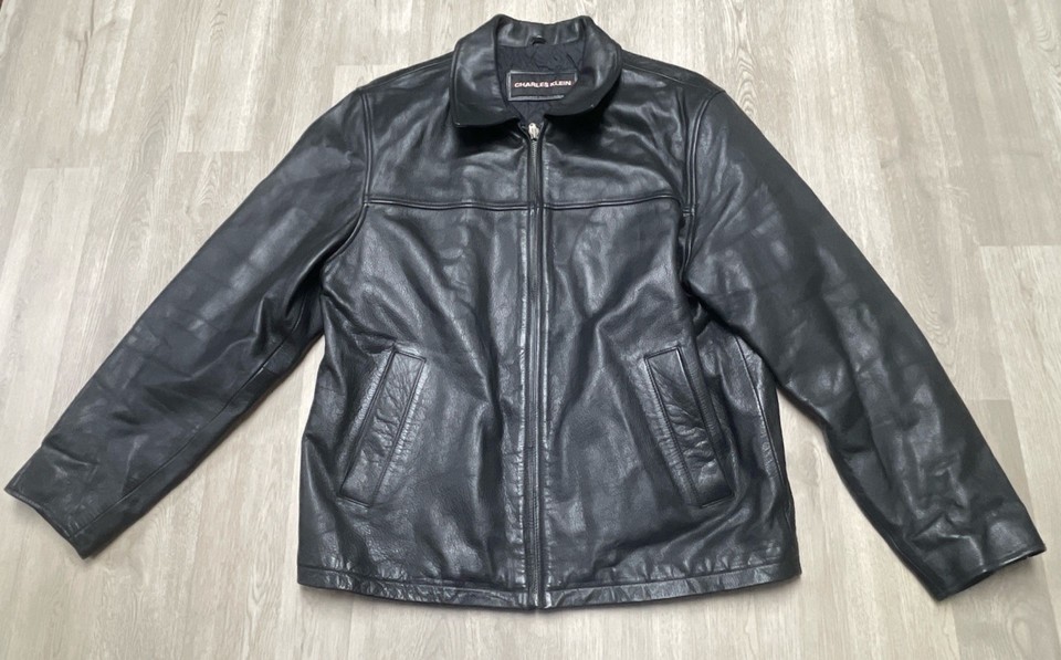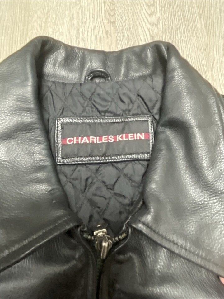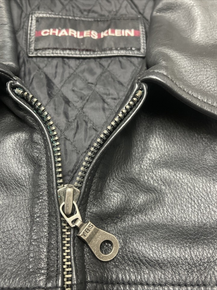 Charles Klein Leather Jacket Mens Large Black Full Zip Motorcycle Bomber CV JD