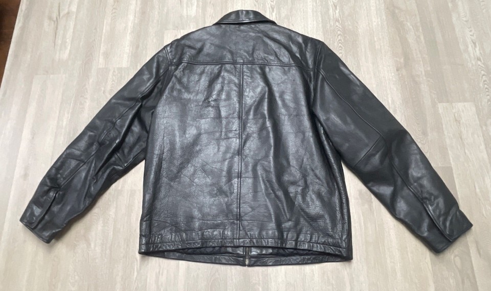 Charles Klein Leather Jacket Mens Large Black Full Zip Motorcycle Bomber