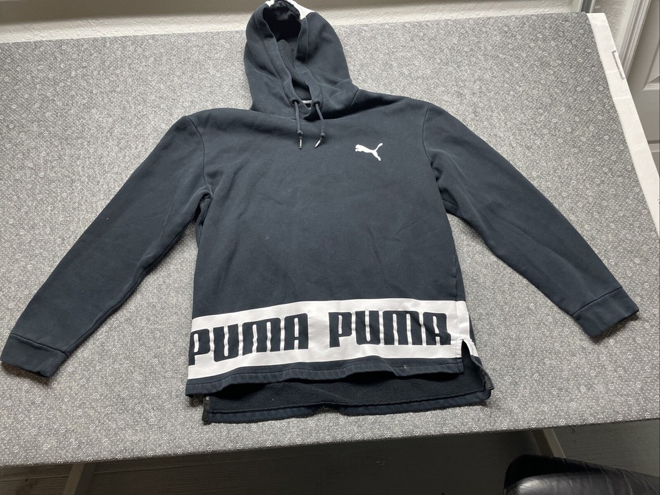 Puma Black White Logo Hoodie Hooded Sweatshirt Men's Size Activewear Large KG JD