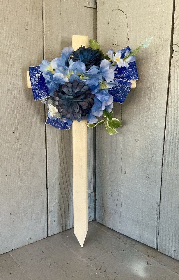 Cemetery cross , grave decoration, blue and 47 similar items