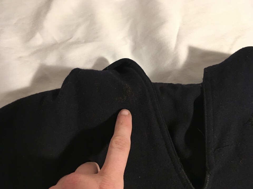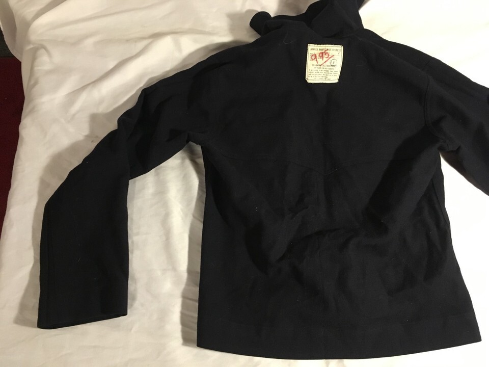 PLEASE REFER TO PICTURES / A LITTLE ROUGH / NEEDS A DRY CLEANING / WAS IN A SEA BAG FOR OVER 50 YEARS . MINOR STAINING ON FRONT
