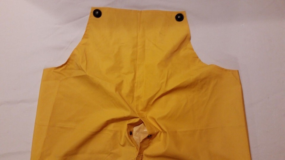BRIGHT ORANGE X LARGE WET RAIN SUIT PANTS BOTTOMS OVERALLS 1 SUSPENDER MISSING