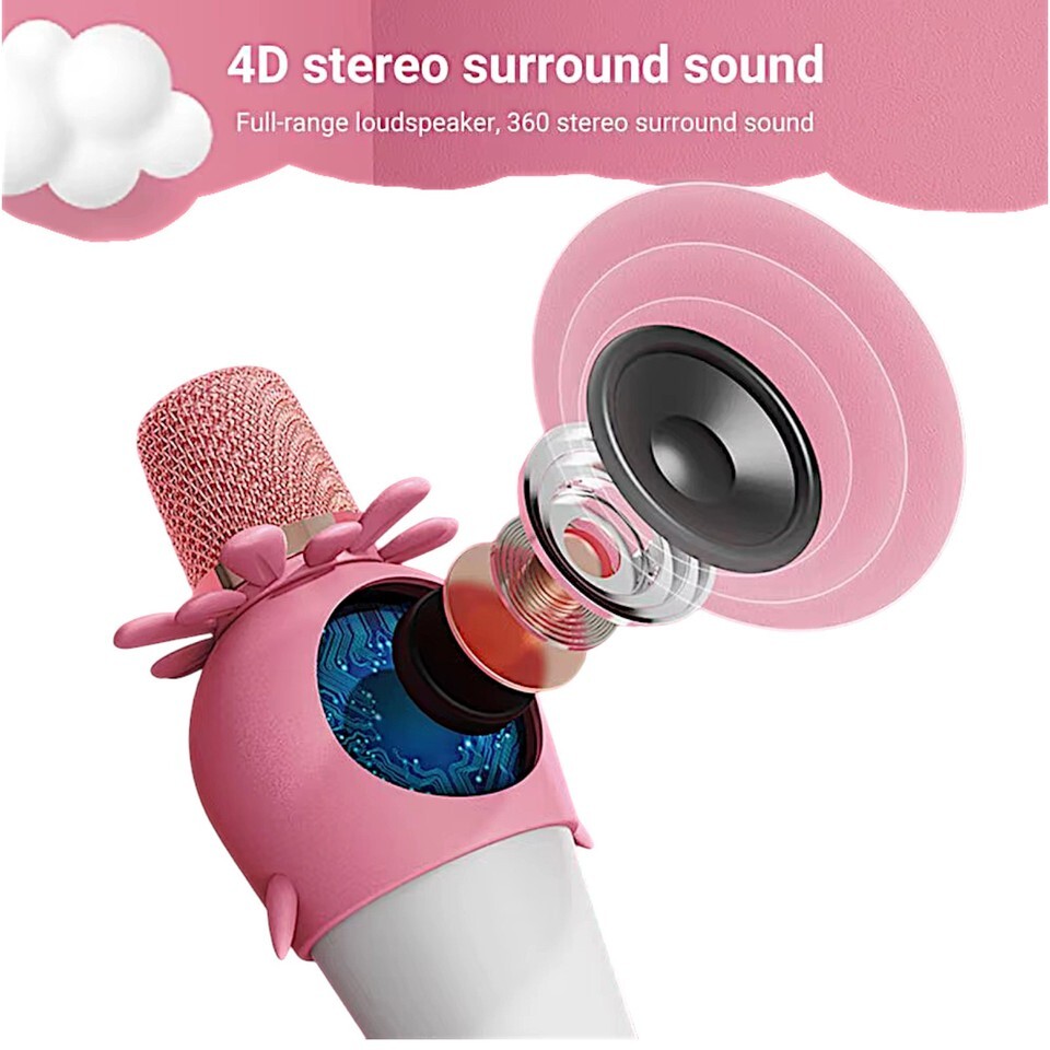 Featuring a cute cartoon shape and a fun voice change function, this wireless microphone is an excellent choice for presenting to your children or students as a gift.