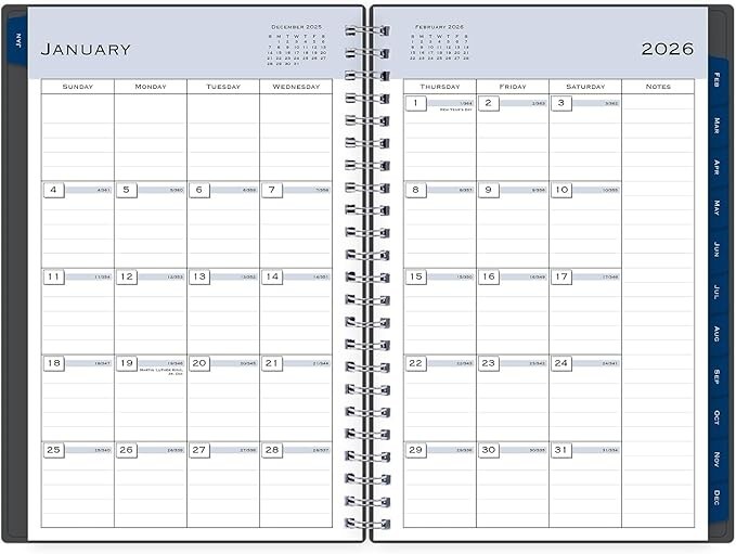 This 5" x 8" planner features a calendar year of 2026 and offers both weekly and monthly views for flexibility in planning.
