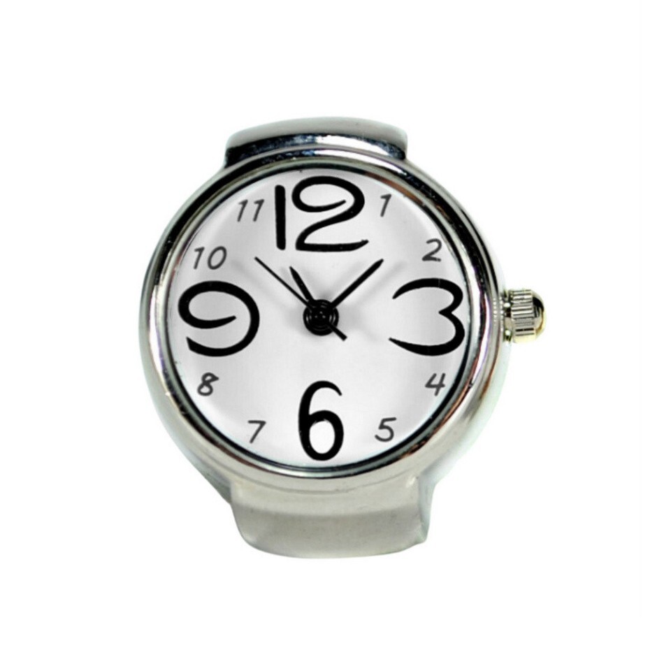 WATCH RING Finger Stretch Band Chrome Time Jewelry NEW Large Number White Gift