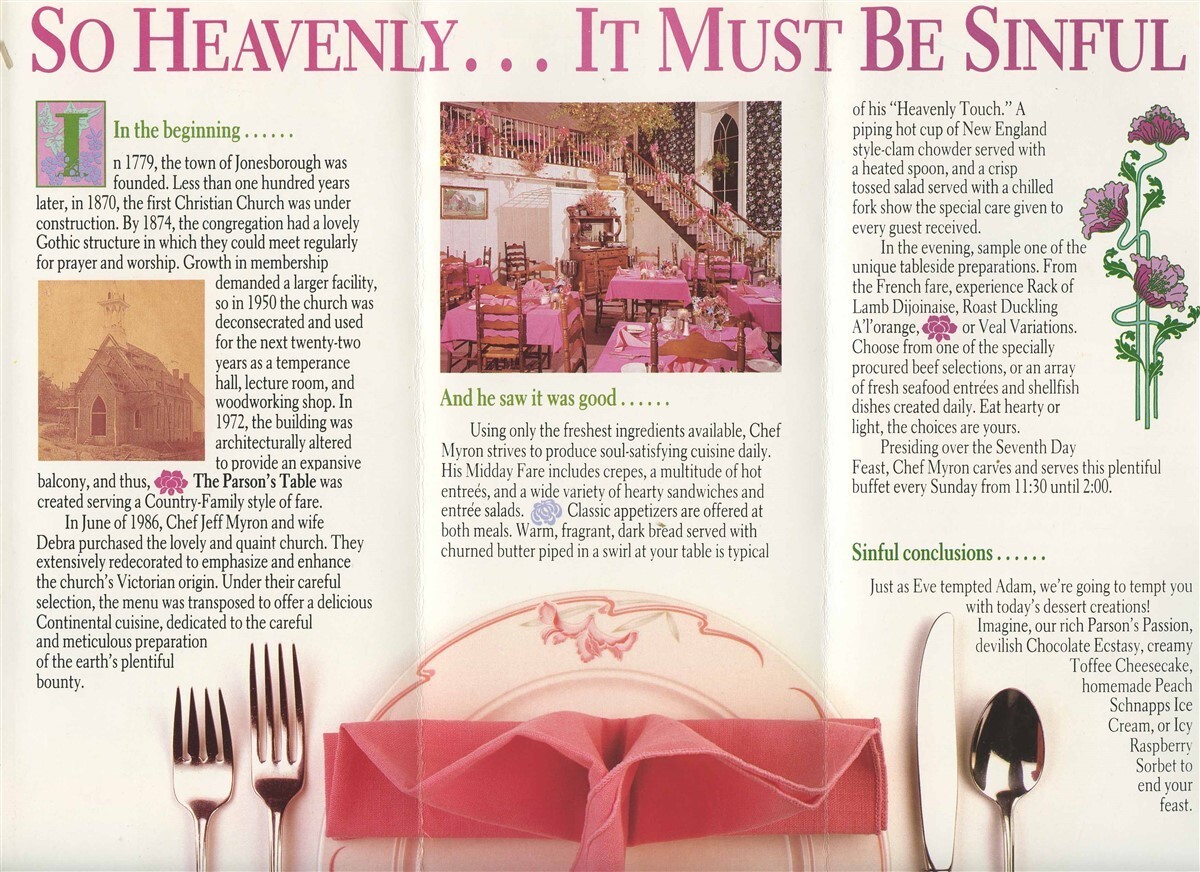 The Parson's Table Restaurant Brochure Jonesborough Tennessee