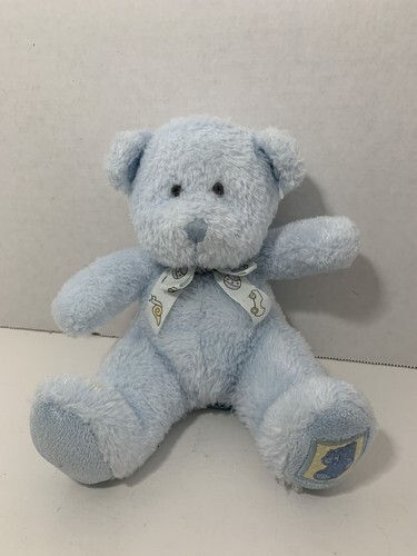 Russ Berrie Baby small plush blue first teddy bear rattle stocking patch on foot