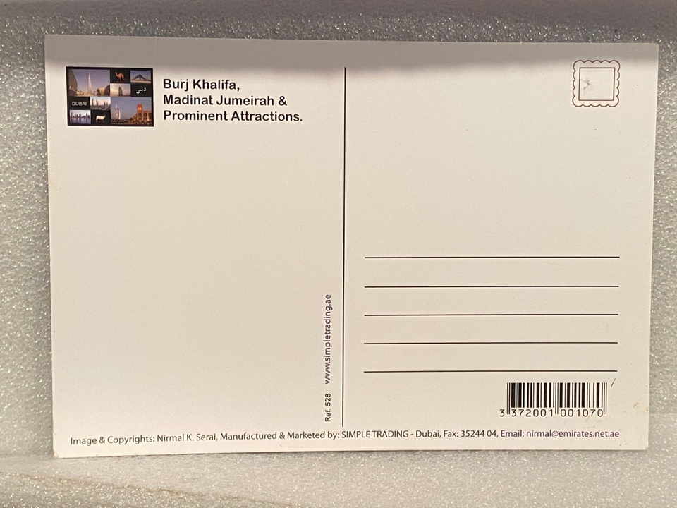 Dubai Burj Khalifa, Madinat Jumeirah & Attractions Postcard Pre-Owned/Unused BT2