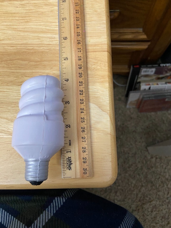 The lightbulb squeeze toy is 3.75" and shaped like a light bulb