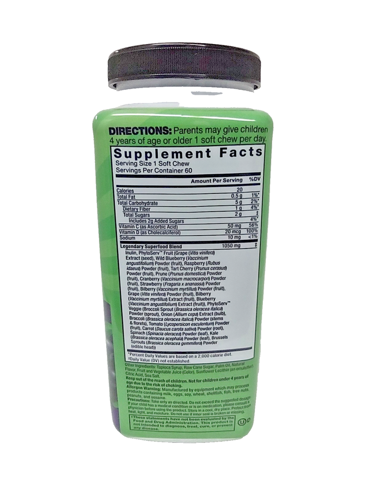 1 Bottle Kids Superfood Chews TOTAL 60 count ? Vitamins C D Antioxidants Daily Wellness