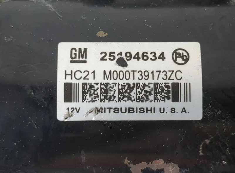 This OEM starter motor solenoid fits 2013?2021 Chevrolet Trax 1.4L Gas SUV and carries part number 25194634. It is designed to engage the starter motor and ensure reliable engine starting and proper electrical operation. The solenoid is in good used condition with normal wear from use, showing no cracks, broken components, or damage, and all mounting points and electrical connectors are intact. This is a direct replacement OEM part and will be shipped with proper tracking.