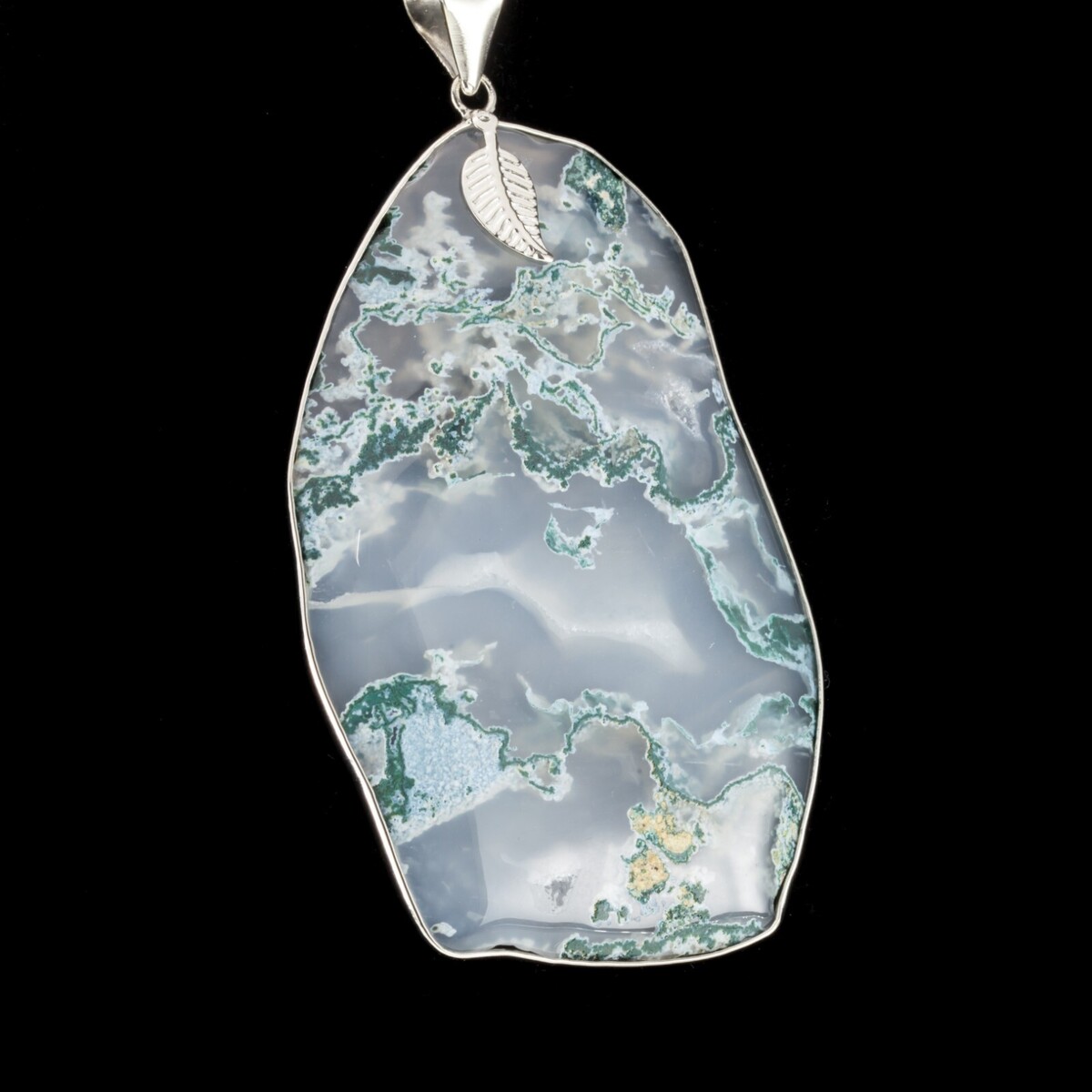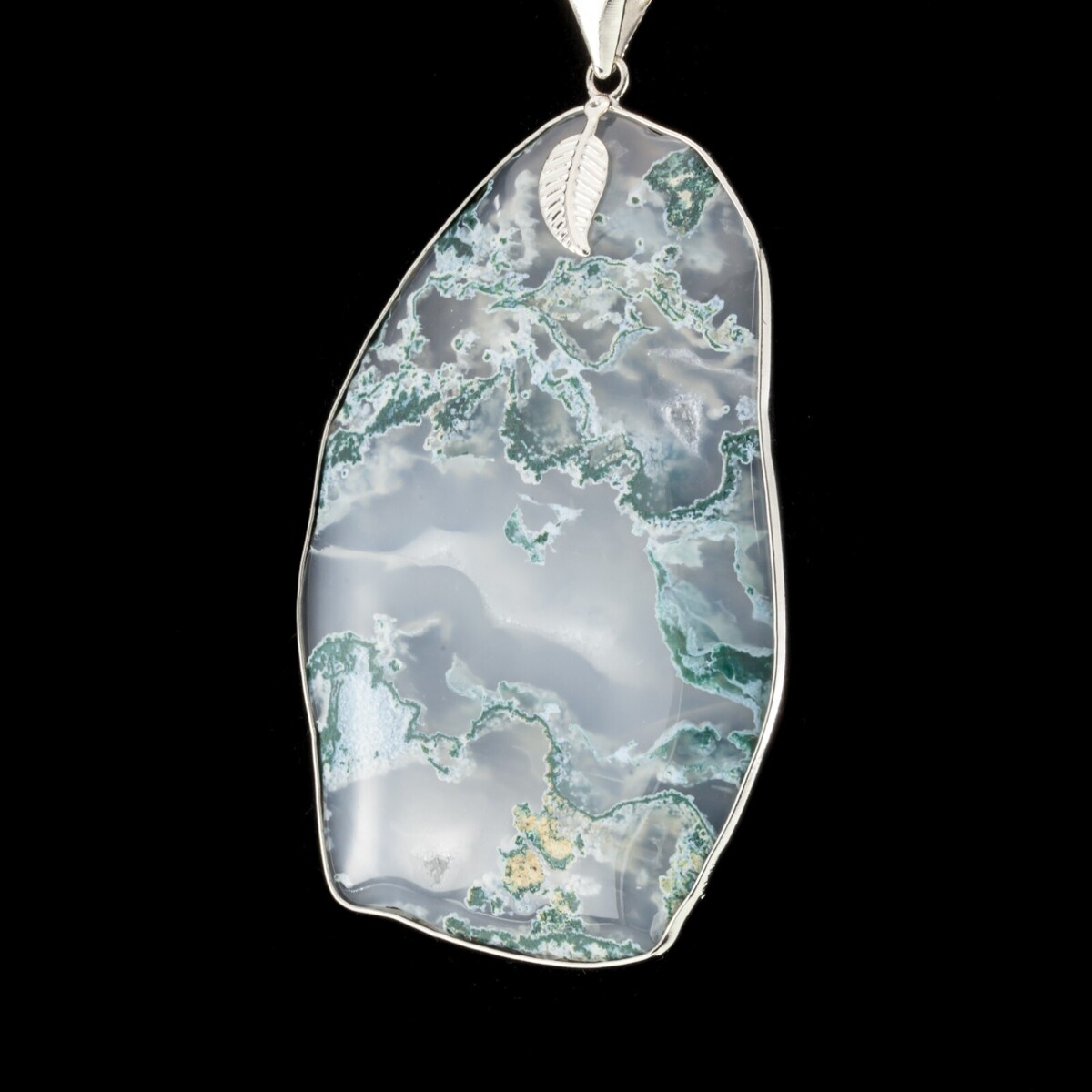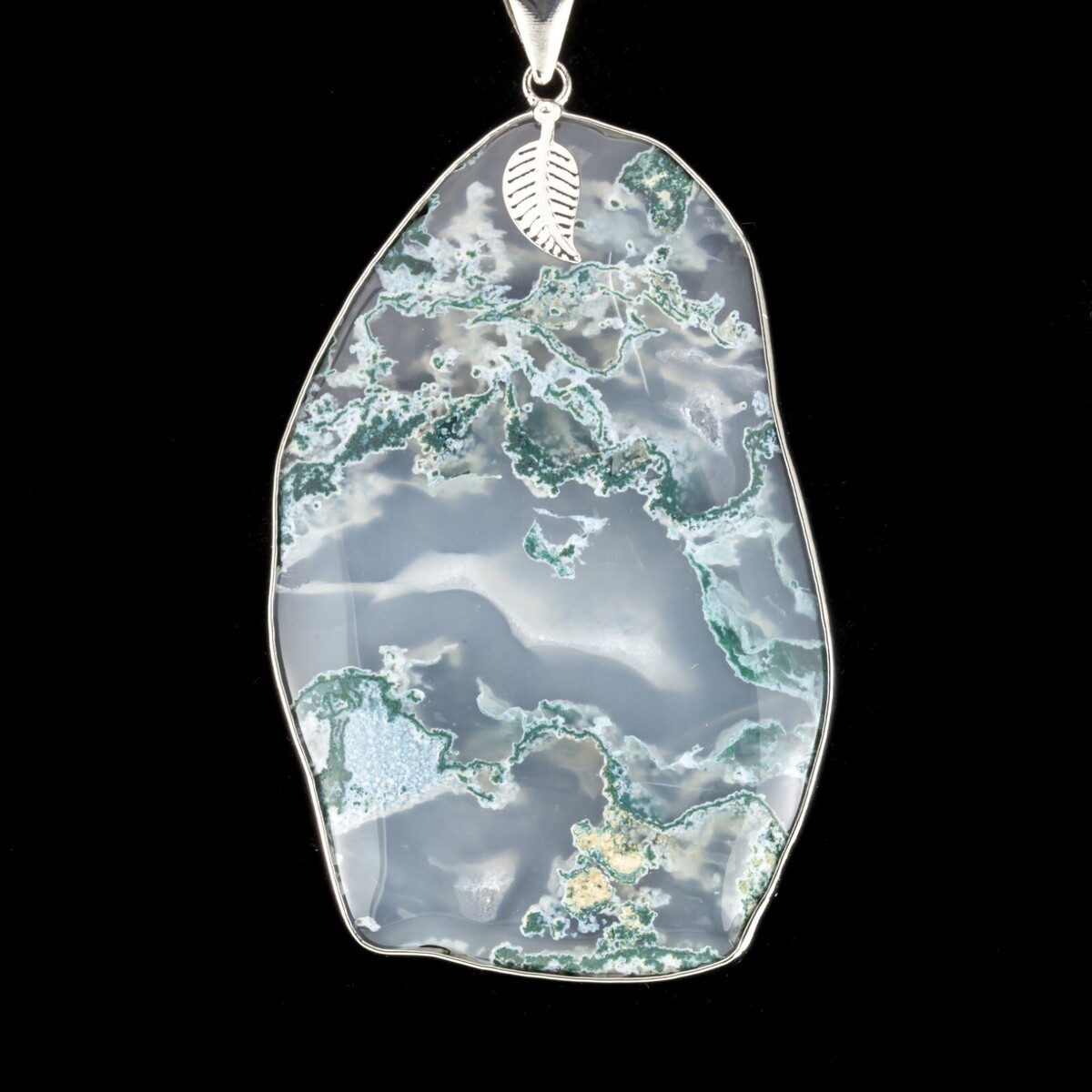 Realizzato con pietra di agata bianca e verde, telaio in argento sterling che accentua la foglia sotto Beal