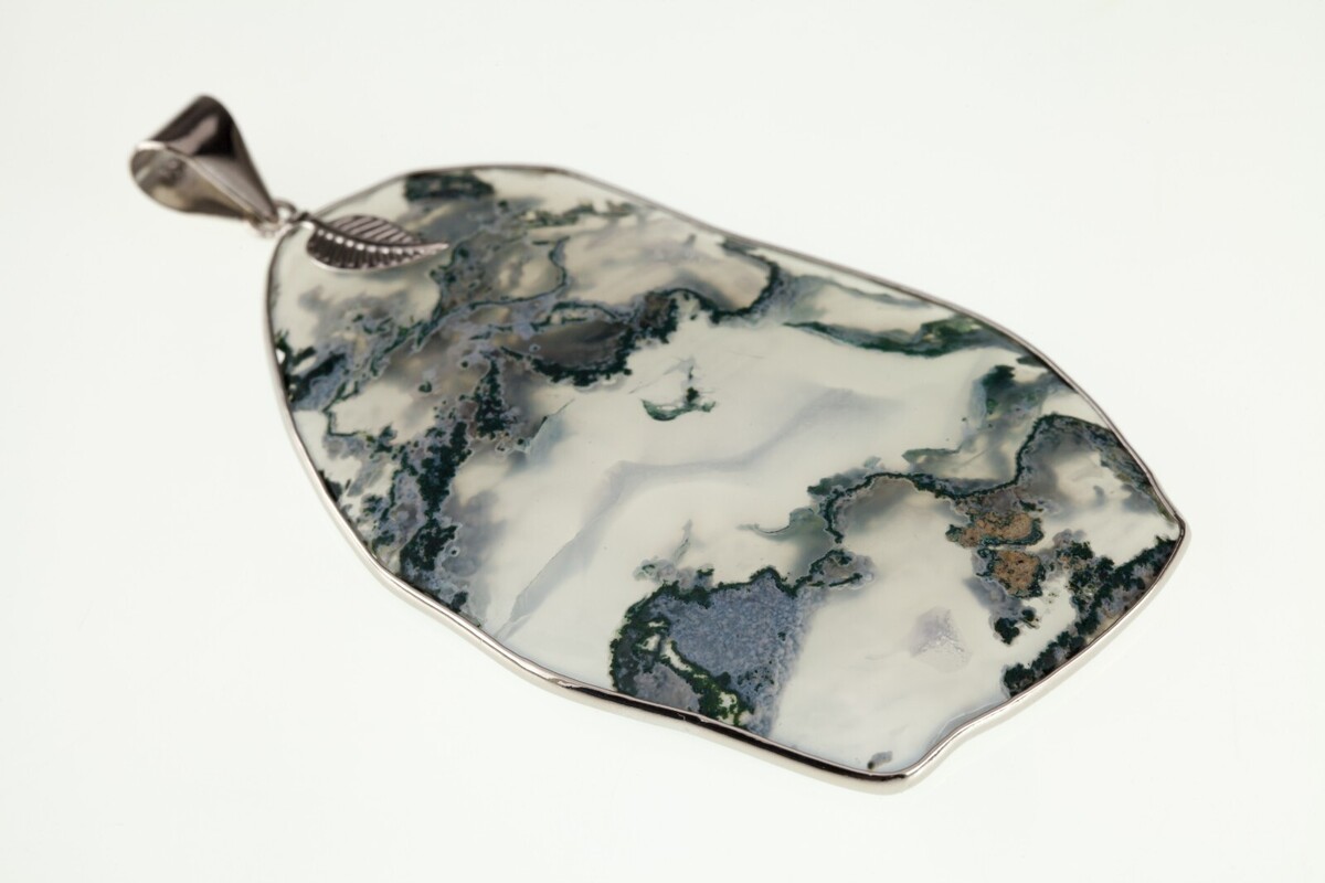 Bianco Verde Pizzo Agate Pendente Argento Sterling 23.5gr