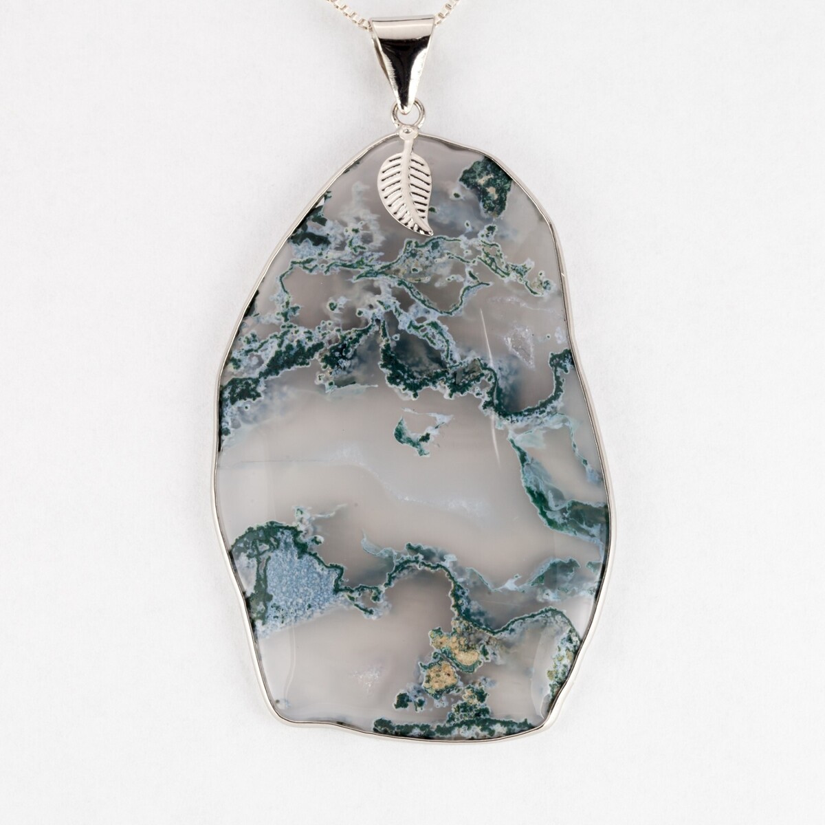 Ciondolo in argento sterling agata in pizzo bianco e verde