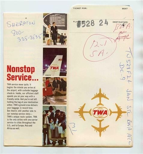 TWA Trans World Airlines Ticket Jacket Record Ticket Baggage Check Bonus Ballot