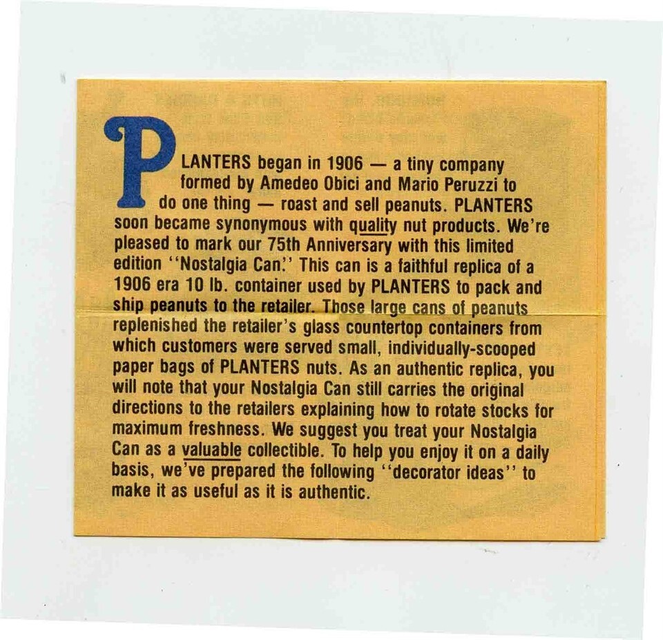 Planters 1906 1981 Nostalgia Brochure Limited Edition Can