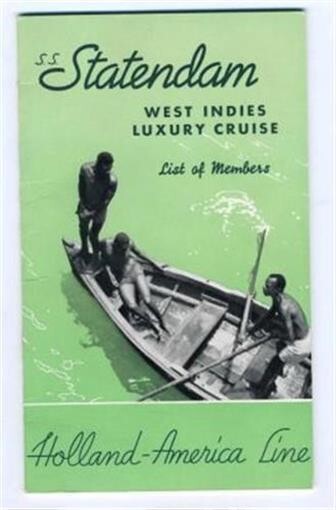 A List of Members ( Passenger List) from a luxury cruise to the West Indies on the Holland America Line ship S S Statendam from New York on February 27, 1937. In near mint condition. With passenger list, cruise information, officers list, itinerary and more.