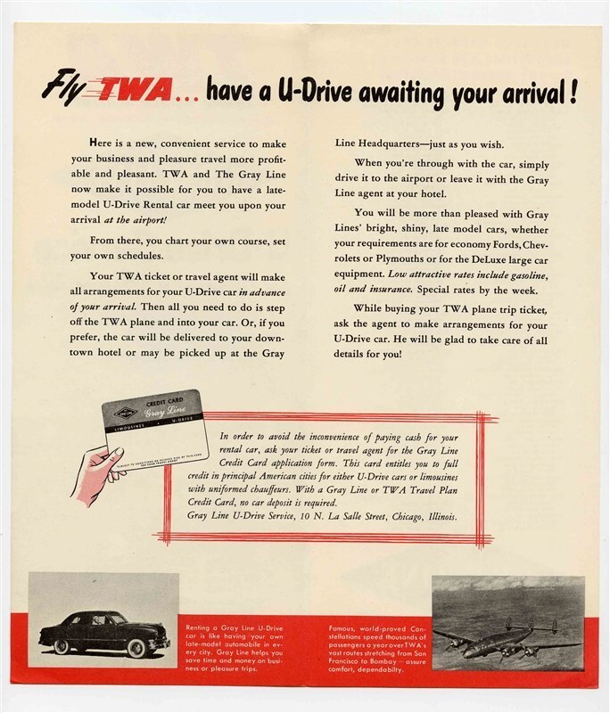 TWA The Gray Line U Drive Service Brochure Trans World Airways Constellation